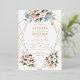 Bleu rose bleu Géométrique Or Lettering Mariage Foil Invitation. Ce design présente un bouquet floral bleu-rose pastel, un cadre géométrique doré et des dorures. Vous pouvez le customiser avec vos coordonnées de mariage.