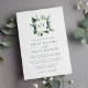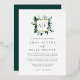Notre faire-part de mariage de monogramme Wild Forest contient vos initiales, monogrammes ou duogrammes en haut, nichés dans une couronne carré de feuillage d'aquarelle d'hiver dans des tons de chasseur, d'émeraude et de vert de forêt avec garniture de feuille d'or. Un point de vue moderne et élégant sur la tendance botanique des mariages d'hiver dans le vert et le blanc chic.