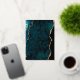 Cette élégante invitation de mariage présente une image arrière - plan d'agate bleue turquoise parée de parties scintillant en faux or. Le texte personnalisable combine écriture manuscrite moderne couleur or, cuivre et polices italiques. L'envers dispose d'un design d'agate turquoise et or coordonné.