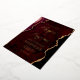 Cette élégante invitation de mariage présente une image arrière - plan d'agate d'aquarelle rouge bordeaux, parée de parties scintillant en faux or. Le texte personnalisable combine écriture manuscrite moderne couleur or, cuivre et polices italiques. L'envers présente un design coordonné d'agate bordeaux et or.