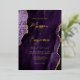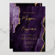 Cette élégante invitation de mariage présente une image arrière - plan d'agate d'aquarelle violette parée de parties scintillant en faux or. Le texte personnalisable en feuille d'or réel combine écriture manuscrite moderne, copperplate et polices italiques. L'envers présente un design coordonné d'agate violet et or.