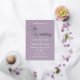 Faire-part de mariage de style simple sur un arrière - plan de couleur mauve et tendance avec "Le Mariage" imprimé en script stylisé avec couleur feuille de votre choix. Modifiez le nom, la date, l'emplacement, etc., avec vos propres informations imprimées en lettres blanches. Conçu pour coordonner avec notre collection Mauve Simple Style Mariage.