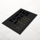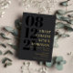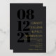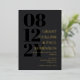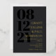 Faire-part de mariage de typographie élégante en gris fusain avec votre date de mariage en grand nombre noir sur le côté de l'invitation. Ajoutez les noms et le libellé mariage dans le papier doré. Papier doré et faire-part de mariage gris foncé avec vos noms dans une grande police.