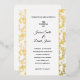 Cette invitation de mariage est présentée dans une mise en page classique sur un magnifique fond de vigne à feuilles d'or.