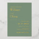Invitation de Mariage d'or Sage Green | Élégant Invitation doré de verdure Annoncez votre journée spéciale avec une élégance époustouflante en utilisant notre Sage Green Mariage Foil Invitation! Cette invitation luxueuse présente de beaux accents verts sauge, surélevés par des détails brillants en feuille d'or. Il crée une première impression inoubliable pour vos invités, mêlant sophistication classique et charme naturel. Ce faire-part de mariage en feuille allie à merveille beauté rustique et glamour opulent. Les tons vert sauge apaisants et les délicates illustrations botaniques évoquent des jardins luxuriants, tandis que la véritable feuille d'or ajoute une touche de luxe et de fête. Il est idéal pour les mariages de jardin, les cérémonies d'extérieur élégantes ou tout événement où vous souhaitez allier beauté naturelle et raffinement. Customisez facilement cette invitation de feuille d'or avec tous les détails de votre mariage : date, heure, emplacement, informations RSVP et détails du registre. Vous pouvez personnaliser les polices, le placement de texte et même les éléments de feuille d'or pour qu'ils correspondent parfaitement à votre vision mariage unique. Faites votre choix parmi la grande variété de papier de qualité supérieure de Zazzle pour vous assurer que vos invitations sont aussi luxueuses qu'elles en ont l'air. Coordonner ces belles Sage Green Gold Mariage Foil Invitations avec cartes RSVP assorties, enregistrer les dates, et autres papeterie mariage pour une célébration parfaitement cohésive et mémorable. Cliquez sur "Customiser maintenant" pour personnaliser votre Sage Green Gold Mariage Foil Invitation et invitation vos proches à un mariage vraiment éblouissant! invitation en or vert sauge, feuille de verdure élégante, invitation de mariage dorée, mariage en feuille personnalisée, invitation en or vert verdoyant, invitation en feuille botanique, mariage chic rustique, or mariage sage, stationerie de mariage élégante