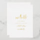 Mariage classique et élégant enregistrer la date avec une mise en page simple avec "enregistrer la date" dans un script moderne. Tout le texte sur le devant est en papier or. La disposition épurée et minimaliste fait de cette sauvegarde la date idéale pour un mariage traditionnel et formel.