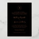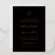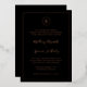 Invitation de mariage simple en noir et or rose avec votre monogramme dans un cercle en haut et les détails de votre mariage entourés d'une fine bordure. Vos noms sont dans une police de caractères cursive élégante. Tous les éléments de design sur le devant sont imprimés en véritable feuille. La mise en page classique et traditionnelle fait de cette invitation un excellent choix pour un mariage formel.