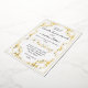 Une double bordure opulente de style Régence baroque en feuille d'or, entourée d'un cadre classique doré, cette annonce élégante de votre célébration de mariage a une tonalité romantique, voire royale. Votre fête de mariage commence avec l'arrivée de cette invitation de mariage. Glamour, distingué et excitant, laissez cette invitation commencer votre mariage de rêve.
