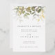 Elégant faire-part de mariage botanique avec aquarelle feuillage et feuilles de feuille d'or.