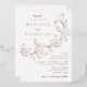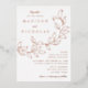 Invitations de mariage botanique avec vos noms et détails mariages en feuille d'or rose, divisée par une vigne de feuilles esquissés avec un arrière - plan blanc. L'élégante invitation de mariage en feuille d'or rose se coordonne avec notre collection de mariages Feuille en cascade.