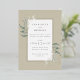 Elégante faire-part de mariage botanique sur un arrière - plan beige avec aquarelle et feuille d'or brillant.