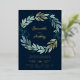 Vous adorerez cette belle aquarelle design élégante. Il présente des éléments floraux aquarelle en forme de couronne circulaire. Les couleurs comprennent le vert sauge, le bleu poussiéreux sur un arrière - plan de la marine. Tout le texte est en or et très facile à customiser avec vos propres détails.