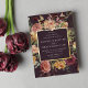D'élégantes invitations à des mariages fleuris ou des mariages d'automne ou d'hiver présentent vos détails encadrés de roses d'aquarelle, de mamans et de verdure dans des couleurs d'automne rustiques incluant pêche, ivoire, rougissant, bordeaux et vert, avec des garnitures en feuille d'or sur un riche arrière - plan de prune. Un design moderne et élégant pour des mariages rustiques chic en automne ou en hiver.