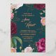 Vous envisagez un mariage romantique, rustique, campagnard ou de grange ? L'arrière - plan vert émeraude apporte vos détails en or et des fleurs en rouge et rose. L'aquarelle fleurie fleurs blanches donnent à vos invitations de mariage un éclat spécial