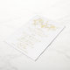 Elégantes invitations de mariage florales avec de délicates fleurs en feuille d'or esquissée et des feuilles près du sommet contre un arrière - plan blanc. Personnalisez avec vos noms et les détails mariages affichés ci-dessous en lettres dorées classiques pour un look raffiné et intemporel. Faisant partie de notre collection de mariages floral esquissés, ces invitations sont idéales pour les mariages élégants, formels ou traditionnels.