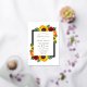 La conception présente des tournesols élégants, des roses et des fleurs sauvages avec une palette de couleurs de coucher de soleil jaune doré, rouge et orange. Le design présente également un véritable cadre en feuille métallique. Vous pouvez changer la couleur de fond sur l'avant et l'arrière à la couleur de votre choix ou laisser les deux en blanc.