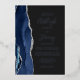 Le bord gauche de cette élégante faire-part de mariage moderne est orné d'une bordure en aquarelle bleu marine ornée d'une parties scintillant en faux argent. Le texte personnalisable combine écriture manuscrite, copperplate et polices italiques dans un vrai papier argenté sur un arrière - plan sombre. L'envers est assorti d'un design d'agate bleu marine et argent.