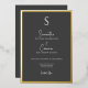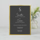 Cette conception est simple mais élégante, complète avec la dernière initiale du marié ou de la mariée au sommet. La bordure est un véritable papier d'or, pour une touche de classe. Minimale, mais étonnante, cette invitation fera certainement une impression. Créé par Simply Farmhouse Press, il fait partie de la série de cartes mariages Black Modern Elegant Minimal dans notre boutique.