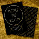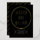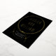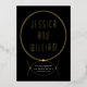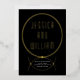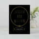 Un faire-part de mariage exquis aux accents de papier doré complexes et au design contemporain d'un cadre doré. Dans le cadre, l'invitation présente les noms du couple sur fond noir. Jouxtant le cadre, deux demi-cercles se chevauchent qui ressemblent à un étouffement en fil de fer, ajoutant une touche d'allure. Au contraire, un élément sophistiqué est introduit, les noms du couple sont élégamment affichés en diagonale en or sur un arrière - plan noir.