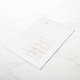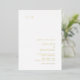 Faire-part de mariage moderne avec une disposition simple et minimaliste avec votre monogramme dans le coin supérieur gauche et vos détails mariages dans le coin inférieur droit. Tous les éléments de conception sont en véritable feuille d'or sur un arrière - plan blanc. Cette faire-part de mariage chic au design minimaliste et élégant se marie bien avec n'importe quel style de mariage contemporain.