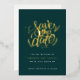 Carte de Mariage Moderne Écriture Calligraphique Vert Émeraude avec feuille d'or pour annoncer votre mariage.