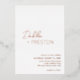 Faire-part de mariage en feuille d'or rose moderne avec un design simple et minimal avec le nom de la mariée dans un script élégant et le nom du marié dans une police sans serif contemporaine. Vous trouverez ci-dessous, dans le coin inférieur droit, les détails de votre événement dans un agencement minimaliste. Tout le texte à l'avant est imprimé en papier à papier.
