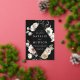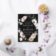 Élégantes invitations de mariage florales hivernales avec vos détails mariages affichés en lettres blanches nichées à l'intérieur d'un cadre en feuille d'or fleurie et rose avec un arrière - plan noir. Les fleurs d'hiver sont recouvertes d'une palette de couleurs de rose, rose clair, ivoire et jaune doré doux, avec des feuilles d'eucalyptus et des feuillages d'hiver dans des tons vert sauge et vert forêt riche.