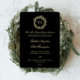 Présentez votre invité à la formalité de votre mariage pendant les vacances et les wow avec cette glamour moderne Berry Wreath Monogram Gold Black Mariage Foil Invitation. Une belle police de script est jumelée avec un type de serif classique et une branche de baies sèches a pour une mise en page de typographie formelle. L'élégance d'une carte noire imprimée en or, argent ou or rose, en feuille métallique associée dégage une ambiance festive glamour.