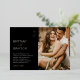 Donnez vie à votre mariage de rêve avec des invitations minimalistes de mariage photographique! Ces invitations élégants et modernes disposent d'un arrière - plan noir élégant avec une photo à l'avant et à l'arrière que vous pouvez facilement remplacer par la vôtre. Pour les rendre plus spéciales, elles sont équipées d'un modèle de texte en feuille de papier avec tous vos détails mariages, ce qui rend ce design unique vraiment unique. Assurez-vous que votre mariage se démarque de la foule avec ces invitations photo minimalistes ! Avec leur look moderne et intemporel, vos invités seront ravis par le luxe subtil que chaque invitation offre. Vous pouvez être sûr que vos invités seront impressionnés par la qualité de ces belles invitations de mariage.