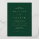 Faire-part de mariage minimaliste et moderne avec vos détails mariages en papier doré avec accents de script de calligraphie. L'arrière - plan vert peut être changé en une couleur de votre choix. L'arrière du faire-part de mariage de feuille affiche votre photo de fiançailles vertical. Conçu pour coordonner avec notre collection de mariages Modern Elegance.