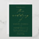 Faire-part de mariage minimaliste et moderne avec vos détails mariages avec "le mariage de" dans un élégant script de calligraphie de feuille d'or sur un arrière - plan vert. L'invitation s'inverse pour afficher votre photo de fiançailles vertical à fond de sang. Conçu pour coordonner avec notre collection de mariages Modern Elegance.