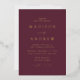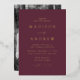 Faire-part de mariage minimaliste et moderne avec vos détails mariages en papier doré avec accents de script de calligraphie. L'arrière - plan de vin peut être changé en une couleur de votre choix. L'arrière du faire-part de mariage de feuille affiche votre photo de fiançailles vertical. Conçu pour coordonner avec notre collection de mariages Modern Elegance.