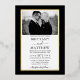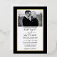 Moderne Elegant Minimalist Faire-part de mariage inclut script Calligraphy. Cadre à huile d'or - Arrière - plan bleu marine - Photo noir et blanc