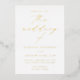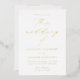Faire-part de mariage minimaliste et moderne avec vos détails mariages avec "le mariage de" dans un élégant script de calligraphie de feuille d'or. L'invitation s'inverse pour afficher votre photo de fiançailles vertical à fond de sang. Conçu pour coordonner avec notre collection de mariages Modern Elegance.
