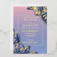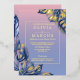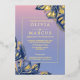 MARIAGE | Rose Poussiéreux Bleu Poussiéreux Feuillage Tropical sur un fond dégradé rose poussiéreux à bleu poussiéreux lever de soleil. Parfait pour le mariage de destination sur une île tropicale - Notre modèle est facile à personnaliser, mais si vous avez besoin d'aide, n'hésitez pas à nous contacter. Conception originale de coup de pinceau créée par © WhimsicalArtwork™