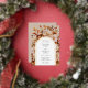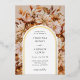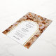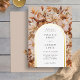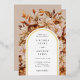 Cette élégante invitation de mariage à cadre en feuille d'or véritable rustique comporte des feuilles de terracotta et d'orange brûlé peintes à la main à l'aquarelle, des dahlias crème et beige, et de belles roses de couleur rouille parfaites pour un mariage d'automne ! Le dos de l'invitation a un fond taupe simple avec un bouquet coordonné et un monogramme de mariage.