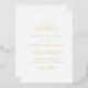 Faire-part de mariage simple avec un design épuré et minimaliste avec les mots "et" ainsi que "réception à suivre" en script avec des swashes. Tout le texte est en feuille d'or. Un Faire-part de mariage classique et intemporel qui conviendra à un mariage formel.