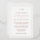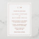 Faire-part de mariage simple avec un design moderne et élégant avec votre monogramme à deux lettres en haut et vos détails entourés d'une fine bordure. Ce dessin est imprimé avec du papier or rose. Un design chic et design qui conviendra à un couple minimaliste.
