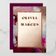 MARIAGE | Des coups de pinceau texturés métalliques factices gras dans un motif abstrait avec des nuances de blanc perle, fuchsia, vin, palette de couleurs rose pâle avec votre choix de cadre double accentué d'or, d'argent ou de rose gold avec des éclaboussures de paillettes métalliques - c'est un design audacieux qui attirera certainement l'attention. Se marie bien avec votre thème de mariage or et rose pâle, vin, baie ou fuchsia. Notre modèle est facile à personnaliser, mais si vous avez besoin d'aide, n'hésitez pas à nous contacter. Conception originale de coup de pinceau créée par © WhimsicalArtwork™