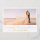 Faire-part de réception de mariage avec 4 photos uniquement - Annoncez votre mariage après votre évasion ou cérémonie privée, et invitez vos invités à votre réception, avec ce carton d'invitation tendance et moderne pour une célébration après le mariage avec 4 photos. Avec une photo sur le devant placée derrière une ouverture panoramique et 3 photos au dos, ce design vous offre de nombreuses options. "just married" est écrit en dessous en typographie manuscrite, pour un look frais et décontracté, ainsi que vos noms, date et lieu en feuille d'or. Tous les champs de texte sont entièrement personnalisables - la couleur, la police, la taille et le texte peuvent être modifiés pour répondre à vos besoins. Le dos de la carte comporte toutes les informations d'invitation et trois photos de mariage verticales. Copyright Anastasia Surridge, tous droits réservés.