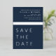 Invitation En Aluminium Marine Bleu Argent Enregistrer la date Élégant