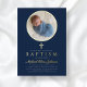 Personnalisé Navy Blue Religious Cross Boy Photo Baptism Gold Foil Invitation.