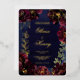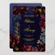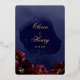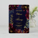 Un faire-part de mariage de marine bordeaux avec feuille d'or avec symphonie de pivoines bordeaux profondes ornées de spray en or et de contours brillants en feuille d'or contre un arrière - plan marin bleu marine de lavage d'aquarelle avec vos prénoms dans un scénario rustique de feuille d'or.