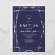 Invitation de flacons d'argent de la marine géométrique moderne Baptême de garçon bleu.