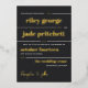 Faire-part de mariage de typographie élégante en noir mat avec détails en feuille blanche et or avec un design de typographie moderne et, de l'autre côté, les détails de votre mariage.