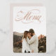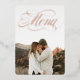 Menu élégant et magnifique avec une photo favorite et un titre "menu" en feuille d'or véritable sur la couverture. Votre choix d'or, d'argent ou de rose gold. Utilisez le dos pour disposer votre menu de mariage (pas de feuille d'or au dos).