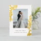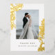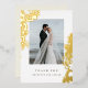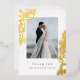 Une belle et classique carte de remerciements mariage avec des crèmes et des éléments en feuille d'or. Parfait pour un mariage formel et élégant avec une touche vintage. Ajoutez votre photo de mariage préférée.