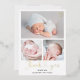 Carte de remerciements moderne, 4 photos faire-part de naissance bébé, avec un élégant script de brosse à la main cool et le coeur et des couleurs modifiables sur le blanc avec de la feuille d'or réelle. Ajoutez 4 de vos photos préférées pour bébé.