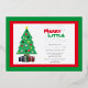 Le thème de Noël des enfants joyeuses petites invitations d'anniversaire. L'Invitation propose un thème de vacances rouge et vert avec des flocons de neige gris, un sapin de Noël et des cadeaux