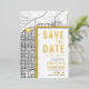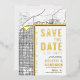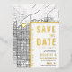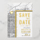 Une carte d'invitation "save the date" unique en vedette une carte de la ville de Mesa, en Arizona. Elle comporte plusieurs éléments uniques qui font une impression sur vos futurs invités, notamment les noms des mariés, le nom de la ville et les mots "Save the Date" en feuille d'or. Un symbole de cœur en feuille d'or indique votre lieu d'amour dans la ville. La carte de la ville est sur les côtés avant et arrière et peut être mise à l'échelle et déplacée. Tous les éléments de cette invitation sont déverrouillés, alors amusez-vous à être créatif et à la rendre à votre goût.